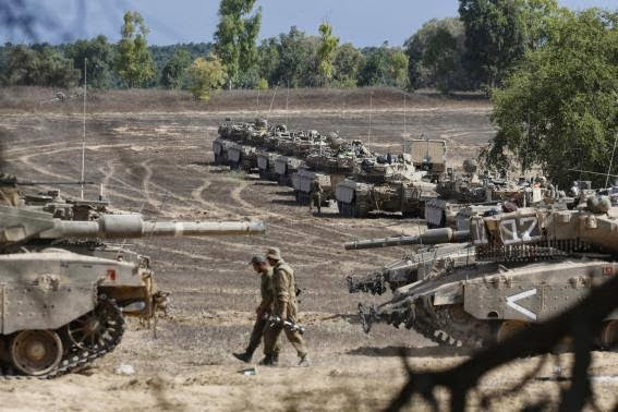 Israeli soldiers walk past tanks at a staging area near the border with Gaza Strip August 4, 2014. Credit: REUTERS/Nir Elias